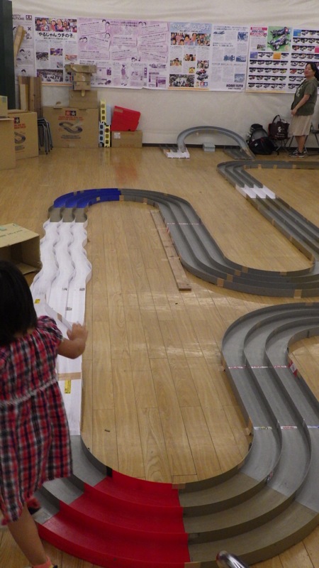 2周目にはスピードに乗りまくったマシンがカタパルトの様にLCから発射され、ダンボールに直撃!突き刺さります。