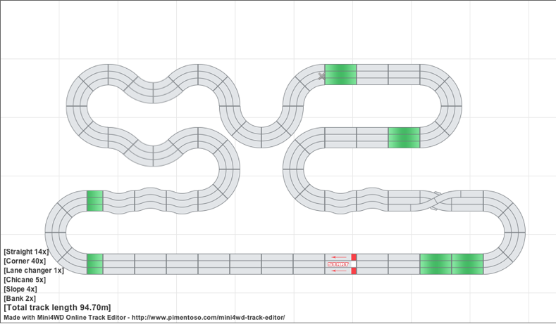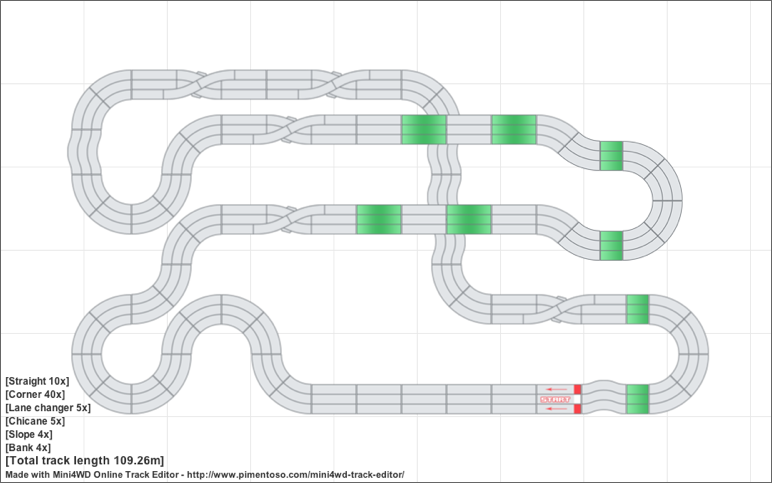 ジュニアサーキット5セット使用した約99.3mのコースです。